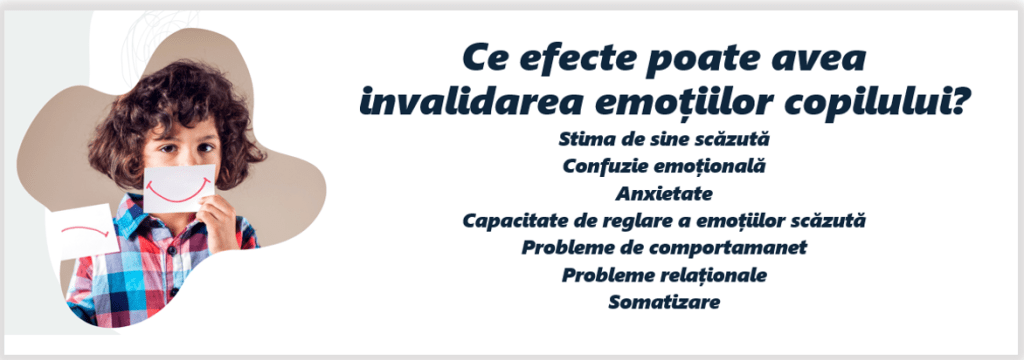 Invalidarea emoțiilor poate duce, de asemenea, la ascunderea lor. Copilul învață că este inacceptabil să simtă furie, spre exemplu, și se va învinovăți pentru că are o astfel de stare. Respectul său de sine ar avea de suferit, deoarece ar reacționa automat la furie de ca și cum ar fi o persoană rea.